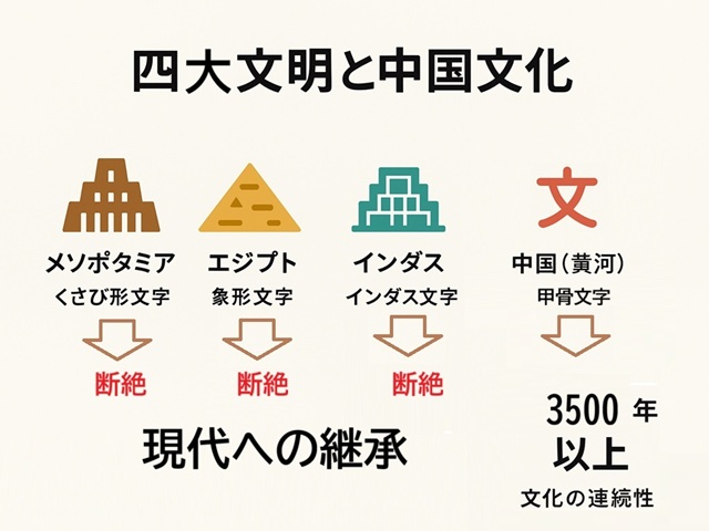 人類が文明を築くうえで必ず登場するのが「文字」です。四大文明もそれぞれ独自の文字を生み出しましたが、現代まで残った文字、消えた文字、形を変えて進化した文字など、その運命は驚くほど異なります。