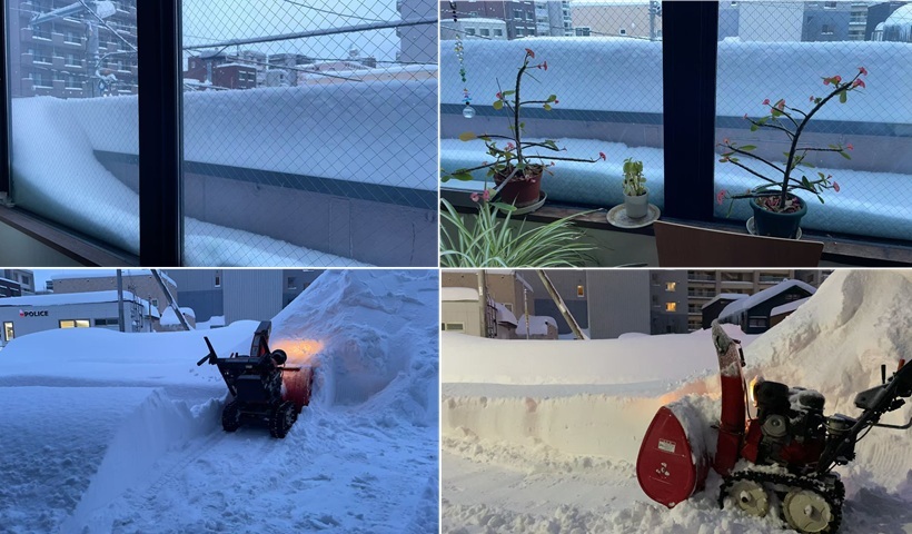 札幌北区の自宅周辺も、しっかりと雪に覆われていた。午後四時半、雪が一時的に弱まったのを見計らって、外出の準備を兼ねて車庫前の除雪をする。見た目には60センチ超えるほど積もっているようで、除雪機を使い、一時間ほど作業を続けた。これほどの量は、記憶の中でも多いほうかもしれない。