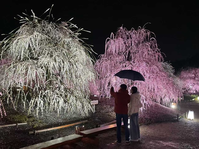 そして今年3月3日、再び同じ庭園を訪れました。すると、しだれ梅は見事に満開。