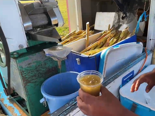アルカリ性土壌のサトウキビ畑は、適切な有機物(堆肥)管理と、pHを考慮した施肥を行うことで、高収量・高糖度が期待できる肥沃な環境です。広大なサトウキビ畑を見て、妻は「搾りたてのサトウキビジュースが飲みたい」と探し始めました。