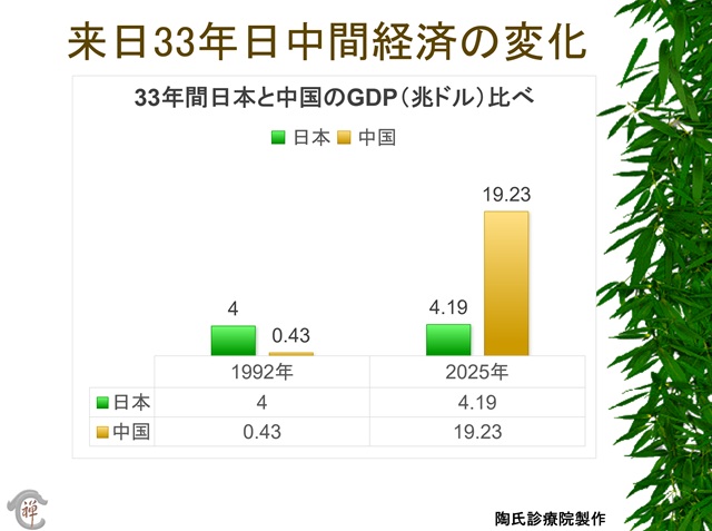来日して33年、日本と中国の社会環境は大きく変化しました。1992年当時、日本のGDPは中国の約10倍近くありましたが、現在では日本は中国の約4分の1となっています。両国を行き来する中で、その変化の大きさを肌で感じる一方、円の価値が下がっていく現状には一抹の寂しさも覚えます。