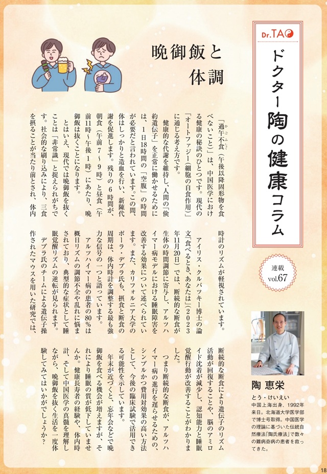 ドクター陶の健康コラム・連載・vol.67 晩御飯と体調