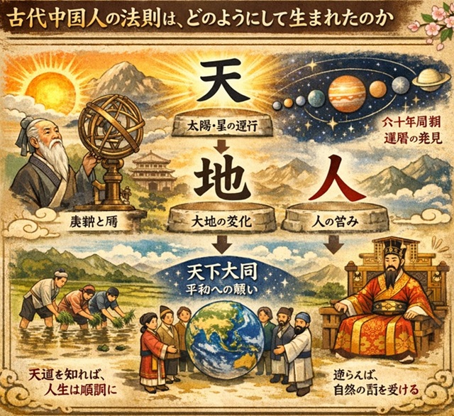 中国思想における「天下大同」という理想も、この**天道(自然の法則)**に基づく、調和と平和への願いから生まれたものです。いつの日か、その法則の由来を人類が真に理解すれば、地球上の人々が分かり合える時代が来ると私は信じています。