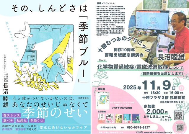 また、開院10周年と出版を記念して、11月9日(日)13:30〜16:00、帯広市・とかちプラザ2階 視聴覚室にて講演会が開催されます。帯広の皆さんにはとても良い機会になるでしょう。