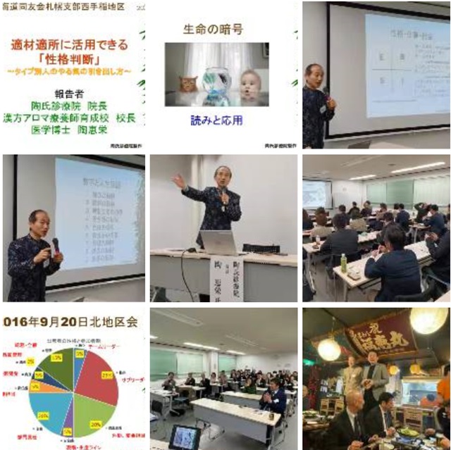 性格診断は、漢方アロマ療養師育成校の授業内容でも取り上げられており、同友会の仲間である私たちも簡単に学ぶことができます。このような取り組みは、同友会の理念である「同友会は、中小企業家が自主的な努力によって、相互に資質を高め、知識を吸収し、これからの経営者に要求される総合的な能力を身につけることをめざします。」にも沿ったものです。
