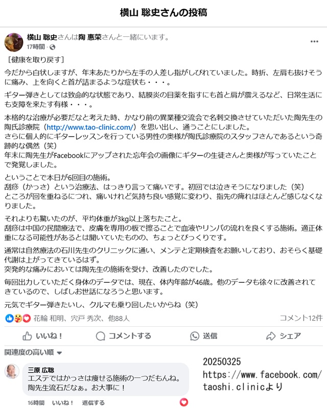 突発的な痛みにおいては陶先生の施術を受け、改善したのでした。
